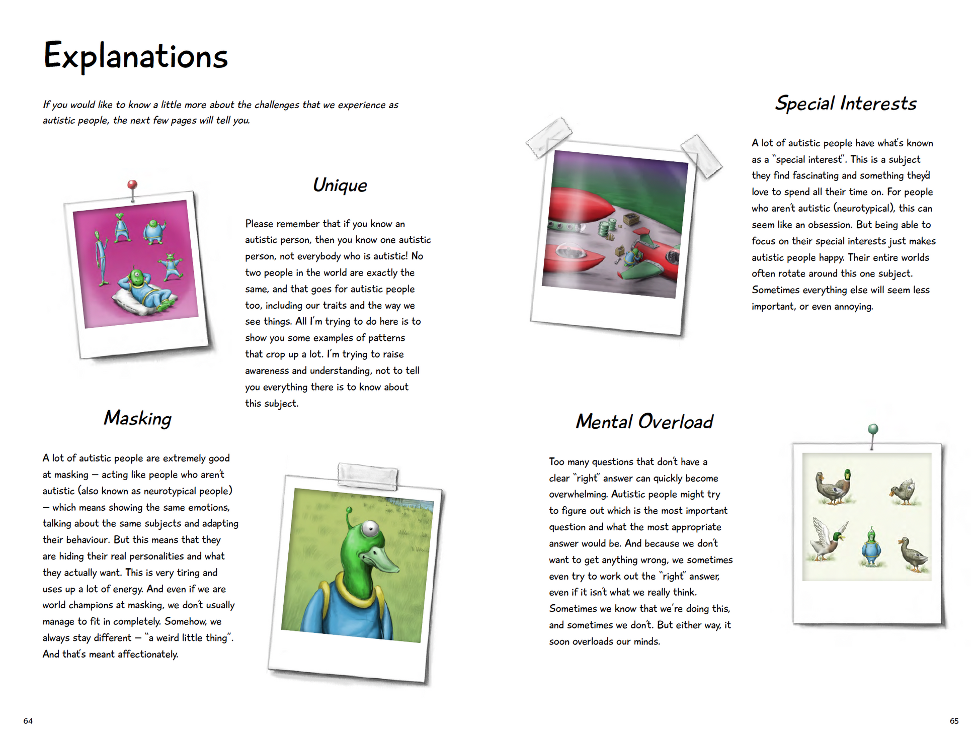 The Wrong Planet tells the story of an alien who makes an unexpected journey to Earth as a metaphor for the experiences of autistic people, who often feel out of place and misunderstood in our world. The sensitive and playful story offers insights into some of the traits and challenges that come with autism, and which can otherwise be hard to grasp.