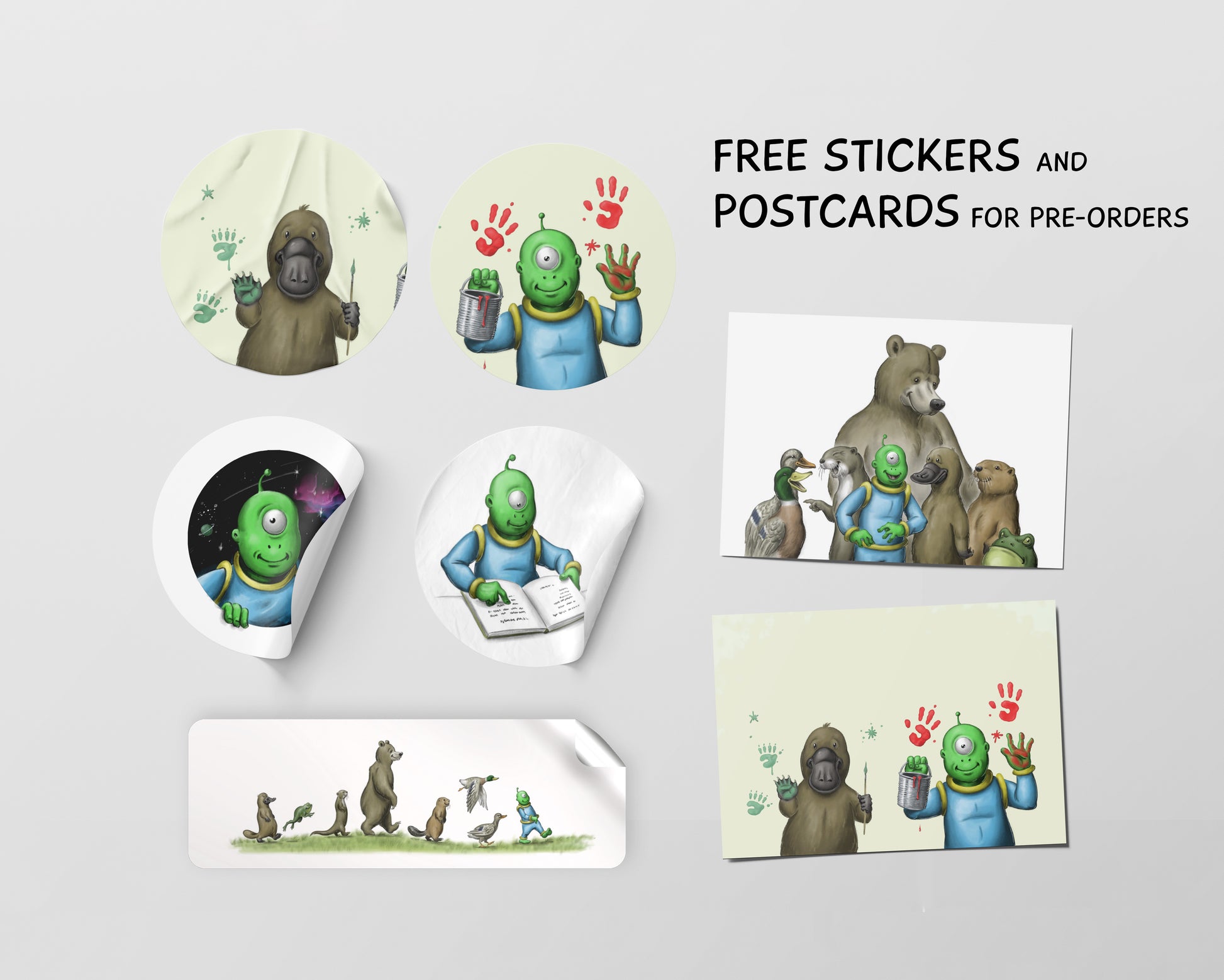 If you buy directly from me on this store, you will get 5 Stickers and 2 Postcards as a Thank You from me as well. And of course I'm happy to sign your book for you! :)